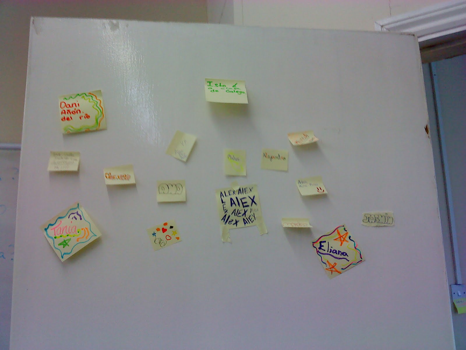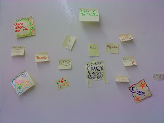 O primeiro día de curso nunca é sinxelo. E encima nun recuncho de aula que nos tocou. Daquela non hai mellor cousa que decorala aínda que os medios sexan máis ben escasos. Uns post-its, uns rotuladores e sobre todo moita ilusión en todos estes rapaces e mais rapazas que comezan os seus estudos de secundaria e ao mesmo tempo os seus estudos de galego. Son tan só dúas horas á semana pero estou seguro que imos aprender moito.